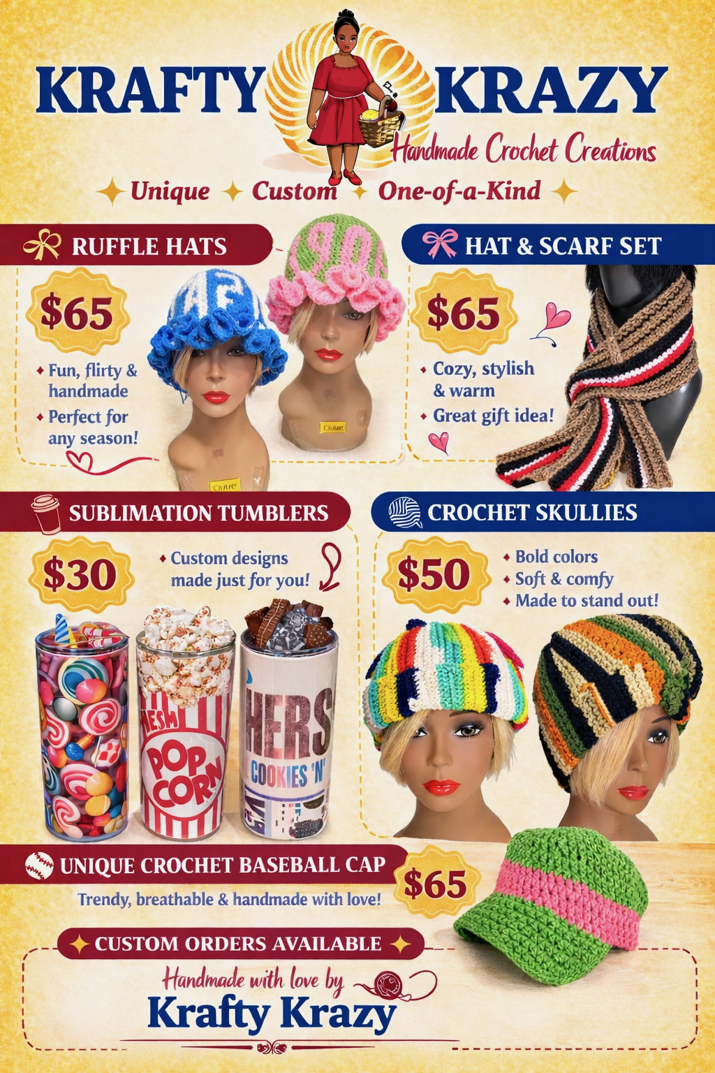 At Krafty Krazy, every item is crocheted fresh just for you! All products are made to order to ensure the highest quality and customization. Please allow up to 4 weeks for production and processing prior to shipment. Turnaround times may vary slightly during high-demand periods.